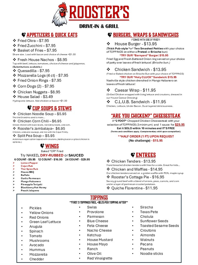 “I’ve never tasted anything like the ranch naked wings at Roosters Drive-In. The atmosphere is just as delightful as the food!”